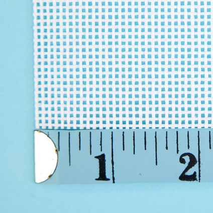 Mesh size refers to the number of holes per inch on your canvas. A 13 Mesh canvas has larger holes, will be quicker to stitch, and will require a thicker thread. An 18 Mesh canvas has smaller holes and a more detailed design, requiring thinner threads.